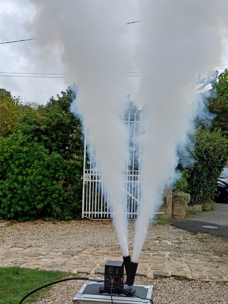Largement démocratisées depuis de nombreuses années, les machines à fumée sont un incontournable pour appuyer un moment fort (arrivée des mariés, une chanson spéciale ou bien encore une mise ne scène spectaculaire avec nos jeux de lumiere). Liquide non allergène.