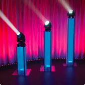 Equipés de plusieurs Lyres, ce sont des projecteurs commandés en wifi généralement utilsés en télévision ou lors de spectacles. L'effet est magnifique surtout lorsqu'une programmation comme nous savons les faire est de mise.